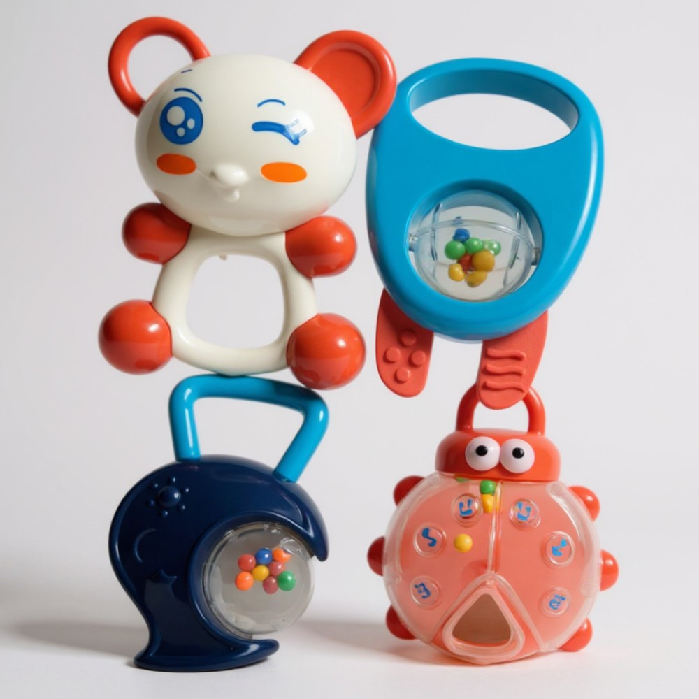 Ez a 4 darabos zörgős babajáték szett ideális választás a kisbabák első játékai közé.
