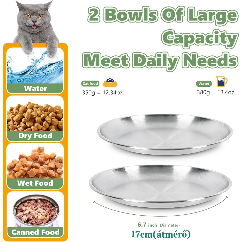 Bajuszkímélő lapos macskatányér rozsdamentes acélból 17cm - 2db