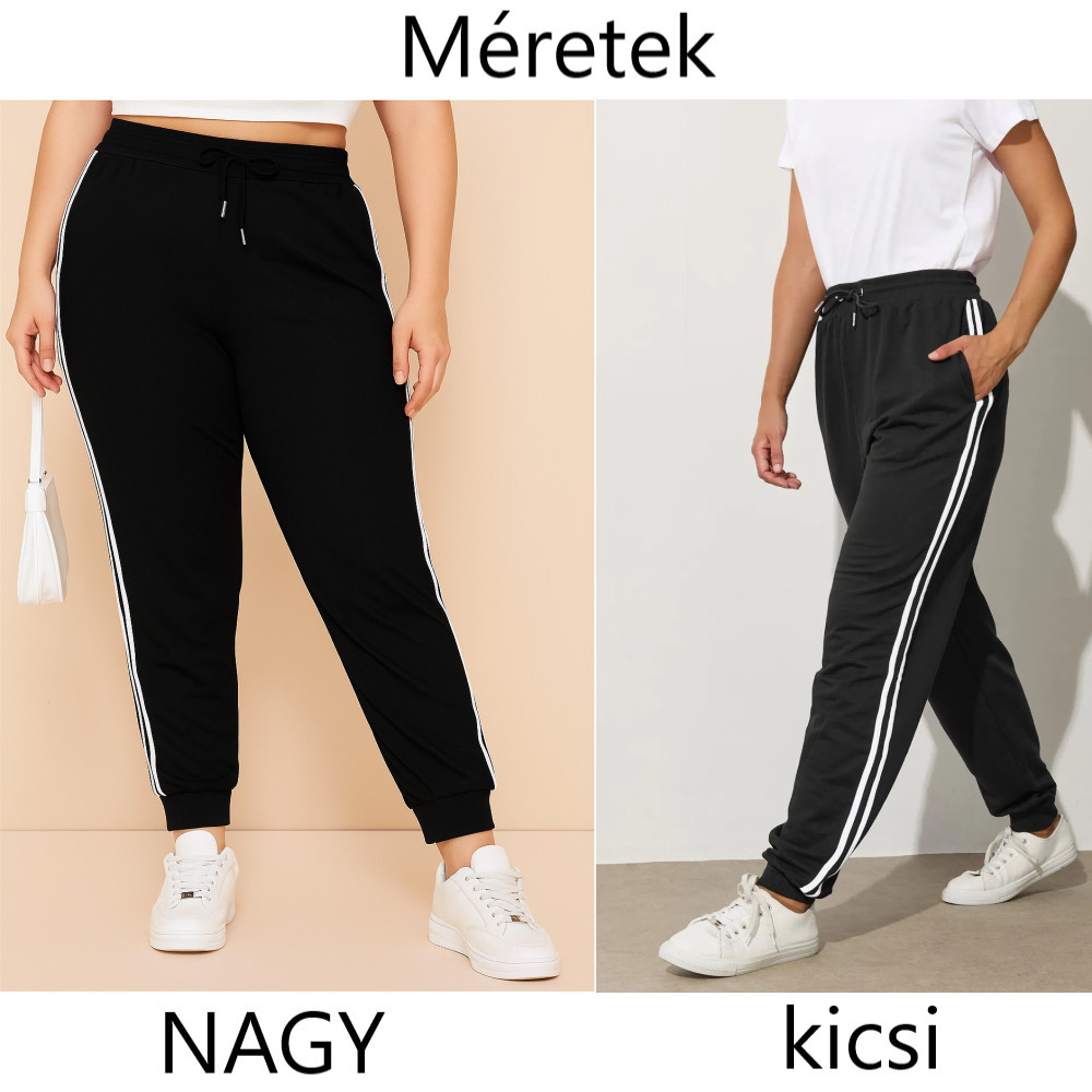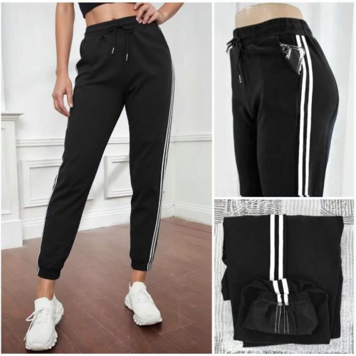 Csíkos szabadidő sport nadrág polár belsővel,passzés - fekete