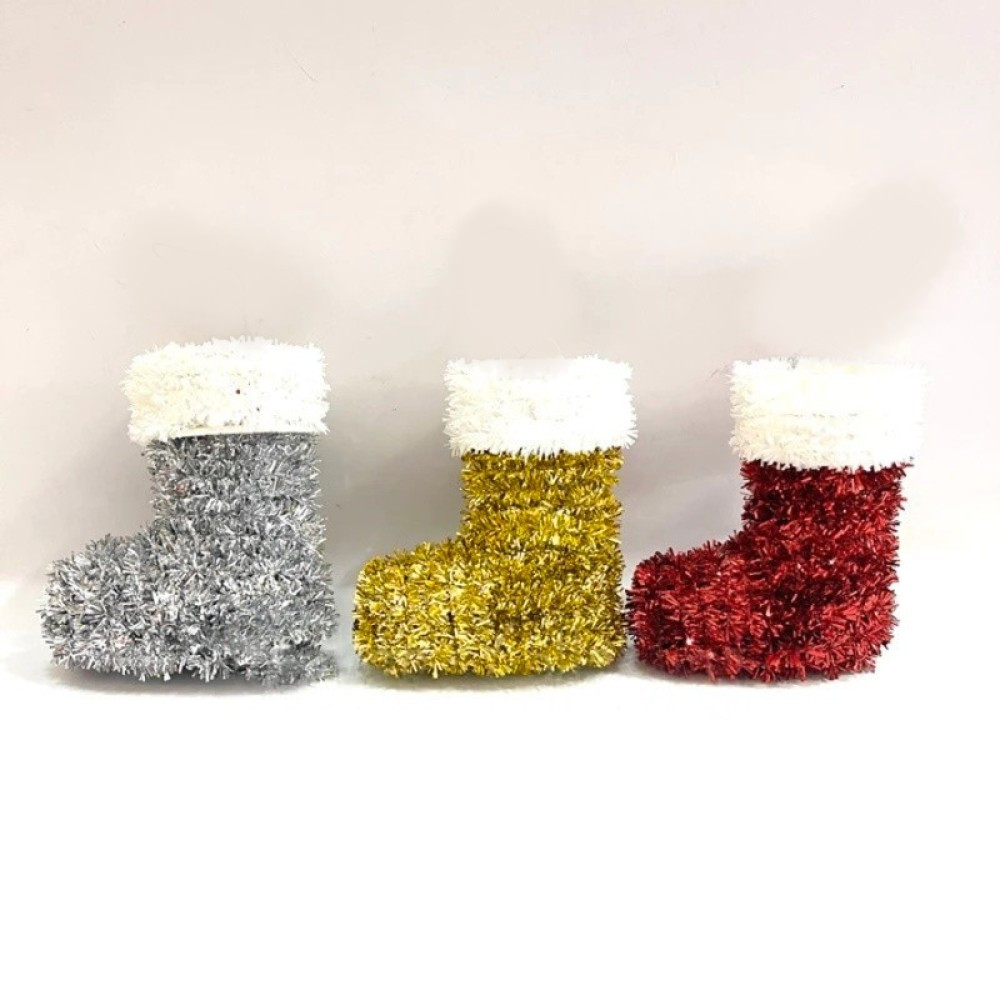 Dekoratív csillogós karácsonyi zokni -35x27cm