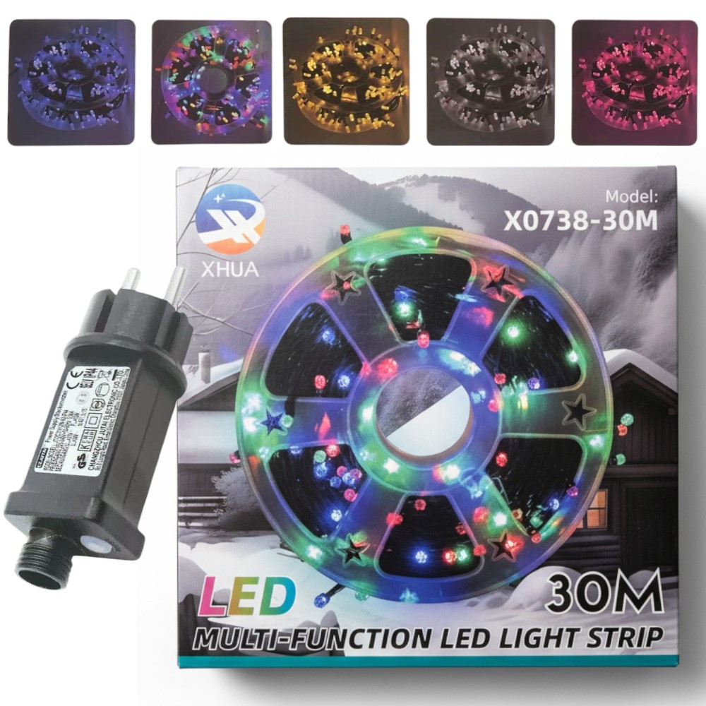 Hangulatos és látványos fénydekoráció bármely alkalomra! A 30 méter hosszú XHUA LED fényfüzér tökéletes választás karácsonyfára, teraszra, erkélyre, kerítésre vagy rendezvények dekorálására. Többszínű LED-jei meleg, ünnepi hangulatot teremtenek akár beltéren, akár kültéren.