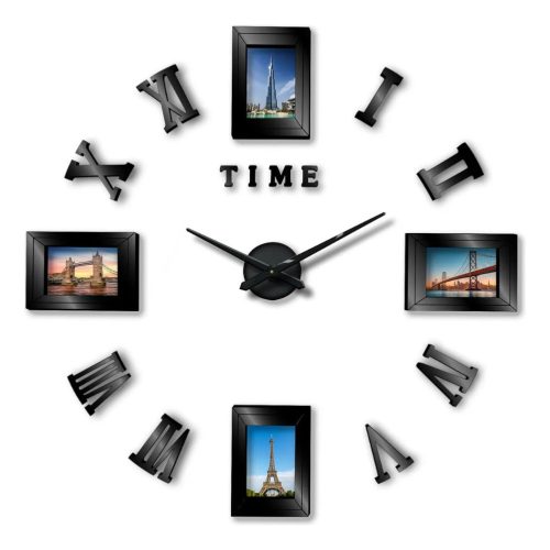 Tedd személyessé és stílusossá otthonod falát az Elegáns PhotoClock faliórával, amely nemcsak az időt mutatja pontosan, hanem kedvenc emlékeidet is bemutatja. A modern dizájn, a klasszikus római számok és az integrált fényképkeretek harmonikus egységet alkotnak, így a falióra egyben dekorációs elemként is szolgál.