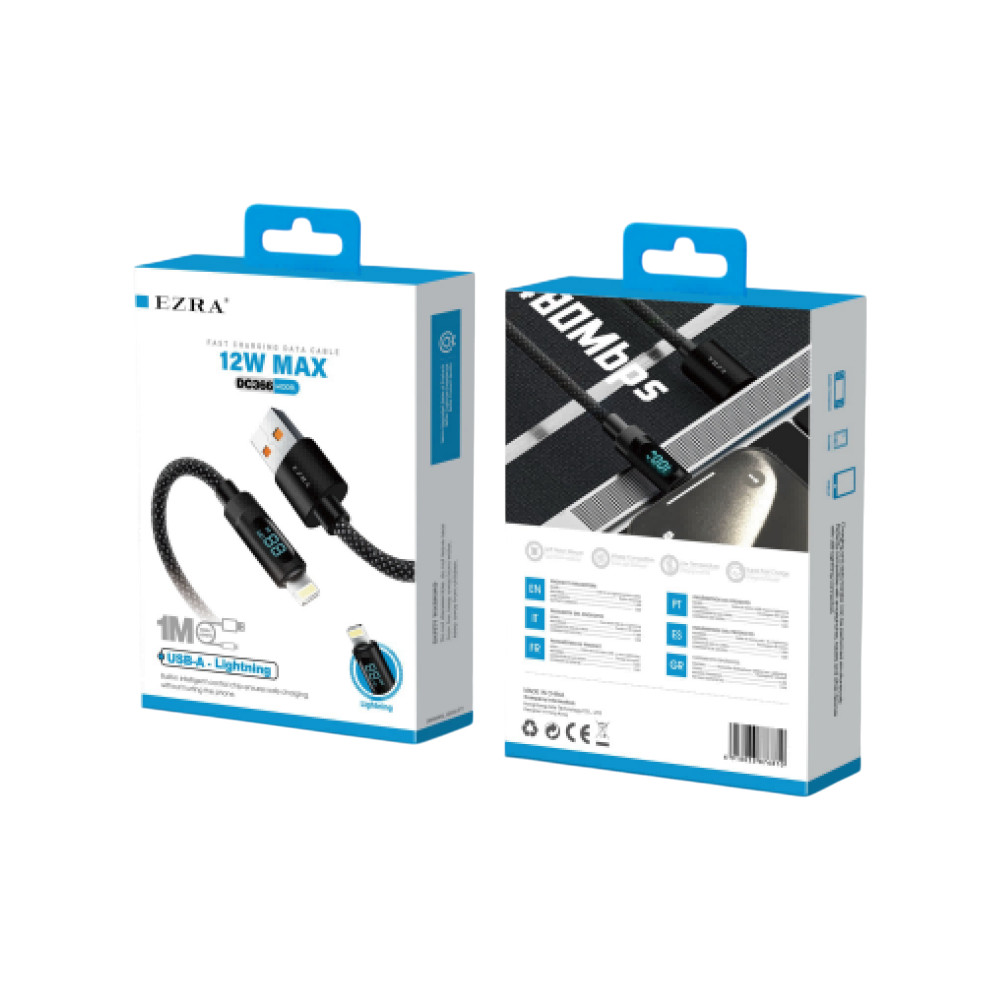 Az EZRA USB-A – Lightning töltőkábel megbízható és praktikus megoldás Apple Lightning csatlakozós készülékek töltésére. A 12 W maximális töltési teljesítmény ideális mindennapi használatra, míg a beépített digitális kijelző segít nyomon követni az aktuális töltési állapotot.