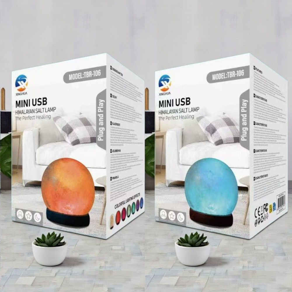 Színváltós faragott himalájai só lámpa - Gömb forma