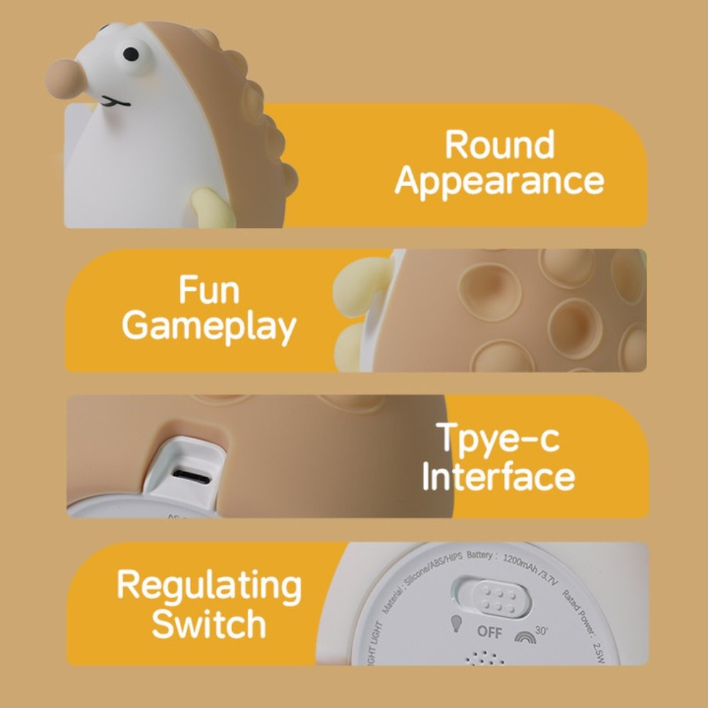 Szilikon sünis éjjeli lámpa - meleg fényű, puha tapintású éjszakai fény