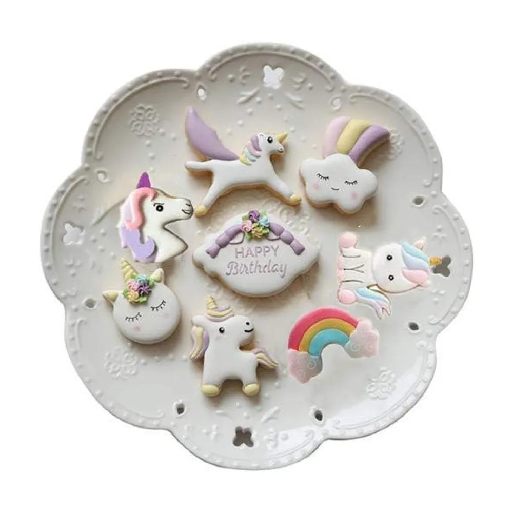 Tedd varázslatossá a sütést ezzel a unikornis és szivárvány mintás fém sütemény kiszúró szettel! A készlet ideális választás kreatív és vidám sütik, mézeskalácsok vagy fondant díszítések elkészítéséhez, hogy minden desszert igazán különleges legyen.