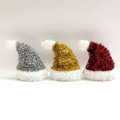Csillogó és ünnepi hangulatot árasztó dekorációs Mikulás sapkák, melyek feldobják bármelyik otthont. Az ezüst, arany és piros változatban kapható sapkák vidám kiegészítői lehetnek az ünnepi asztalnak, polcnak vagy a karácsonyfa környékének.