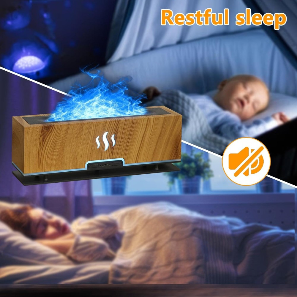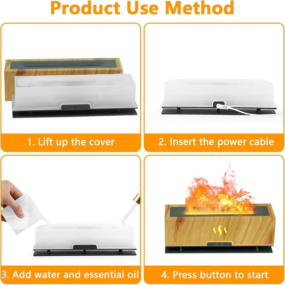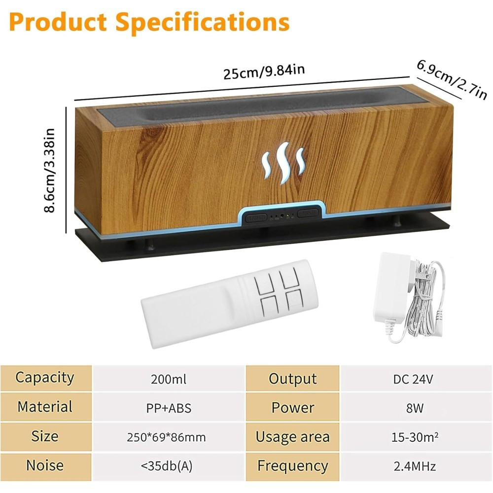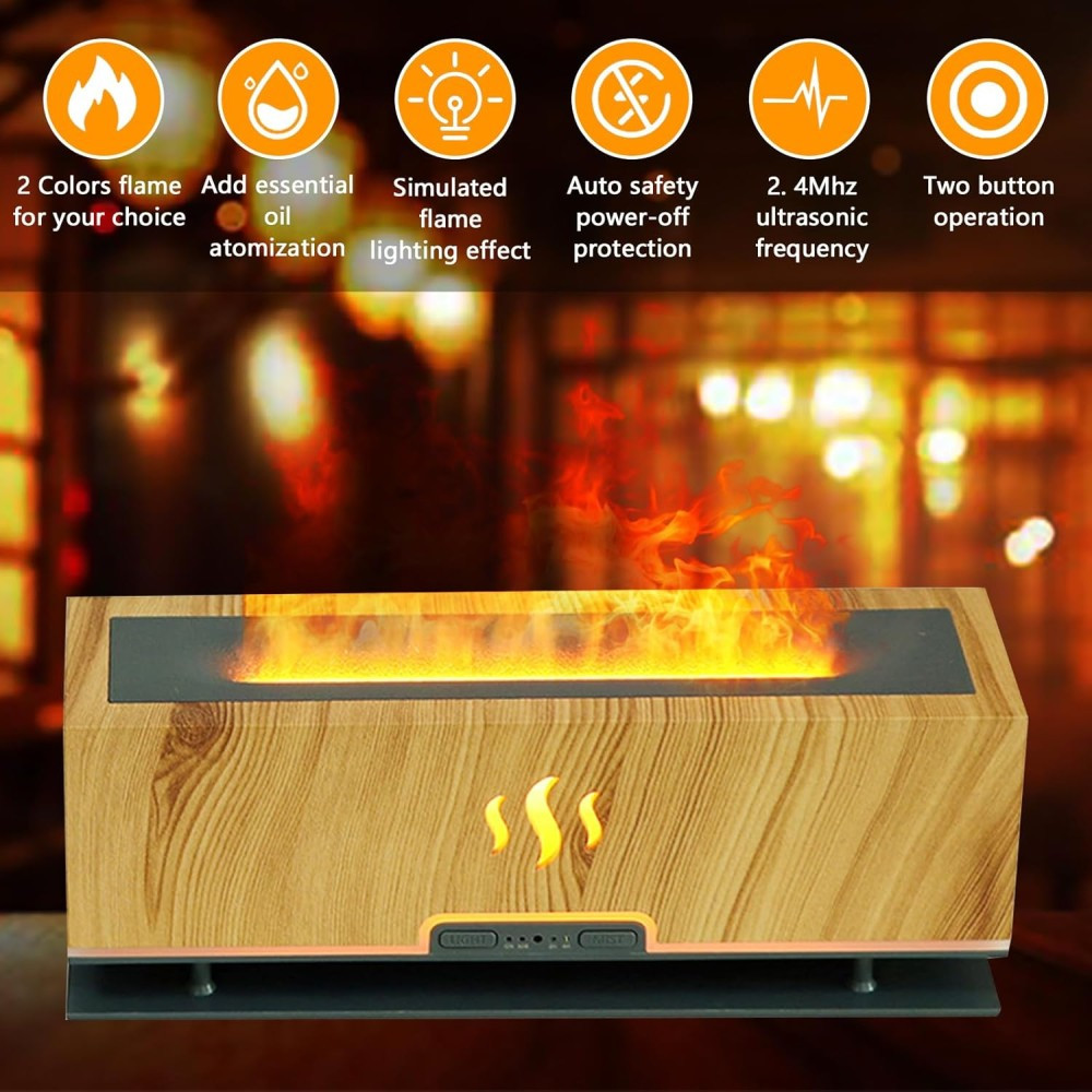 Varázsold otthonodat meghitté és különlegessé ezzel a modern, lángillúziót keltő aromadiffúzorral! A természetes fa hatású burkolat elegáns megjelenést ad, miközben a készülék ultrahangos technológiával finom, hűvös párát bocsát ki – amit a beépített LED fények látványos, tűzszerű ragyogással tesznek igazán egyedivé.