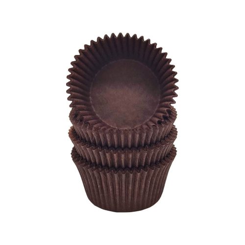 Praktikus barna színű mini bonbon papír kapszula, amely esztétikus és higiénikus megoldást nyújt bonbonok és apró édességek tálalásához.