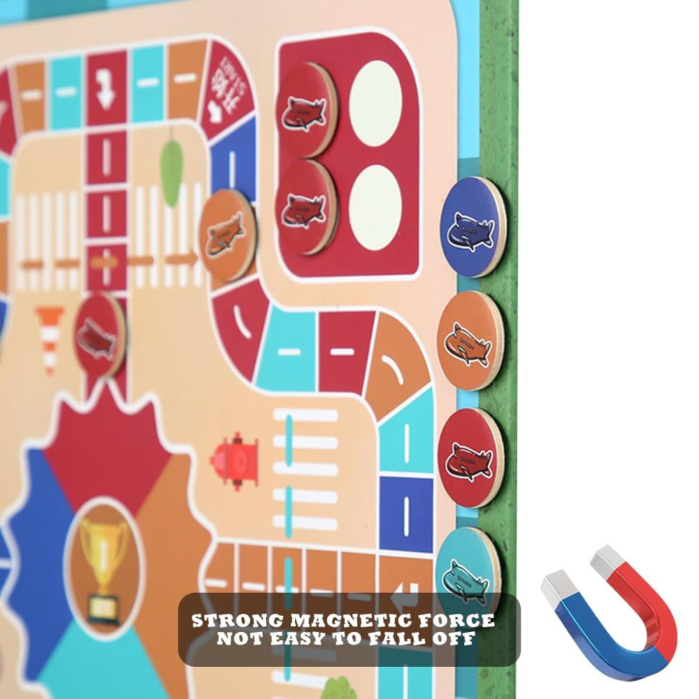 A mágneses figurák biztos tartást nyújtanak, ezért játék közben nem csúsznak el – akár mozgásban lévő járművön is élvezhető a játék. A készlet kiválóan fejleszti a logikus gondolkodást, a stratégiai készséget és a türelmet, miközben kellemes szórakozást nyújt minden korosztály számára.