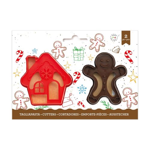 Varázsolj ünnepi hangulatot a sütikészítésbe ezzel a kedves mézeskalács ember és házikó formájú kiszúró szettel! A praktikus, könnyen kezelhető műanyag formák segítségével gyorsan és egyszerűen készíthetsz mutatós mézeskalácsokat, linzereket vagy más tésztás finomságokat.