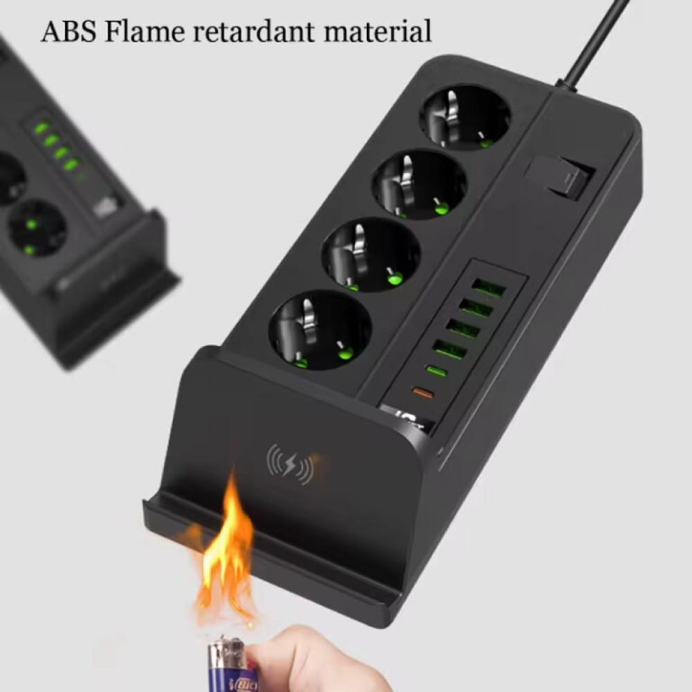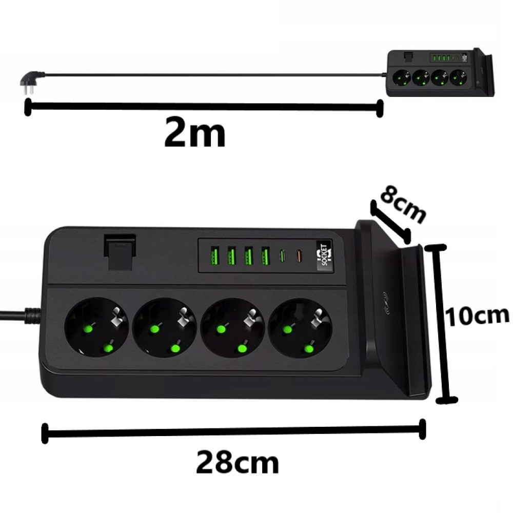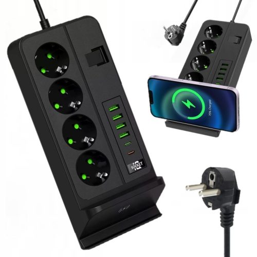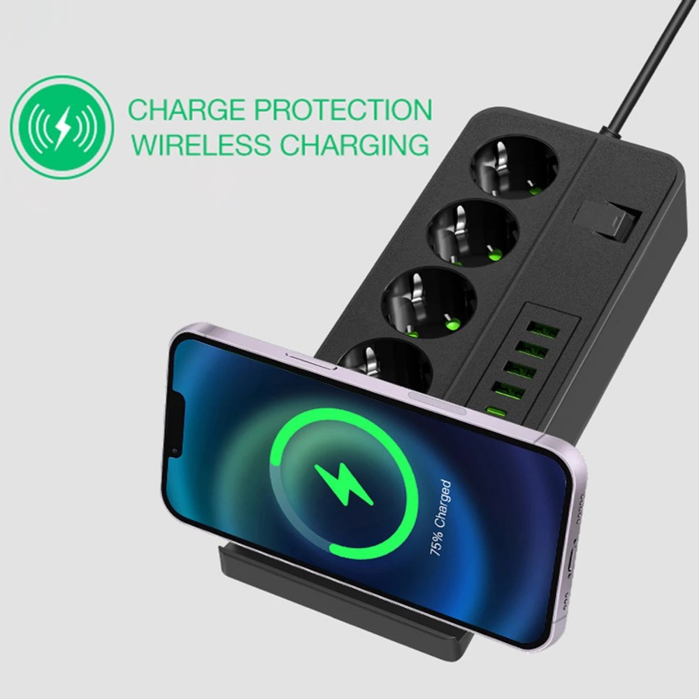 Multifunkciós hosszabító vezeték nélküli töltővel 3000W - 2m