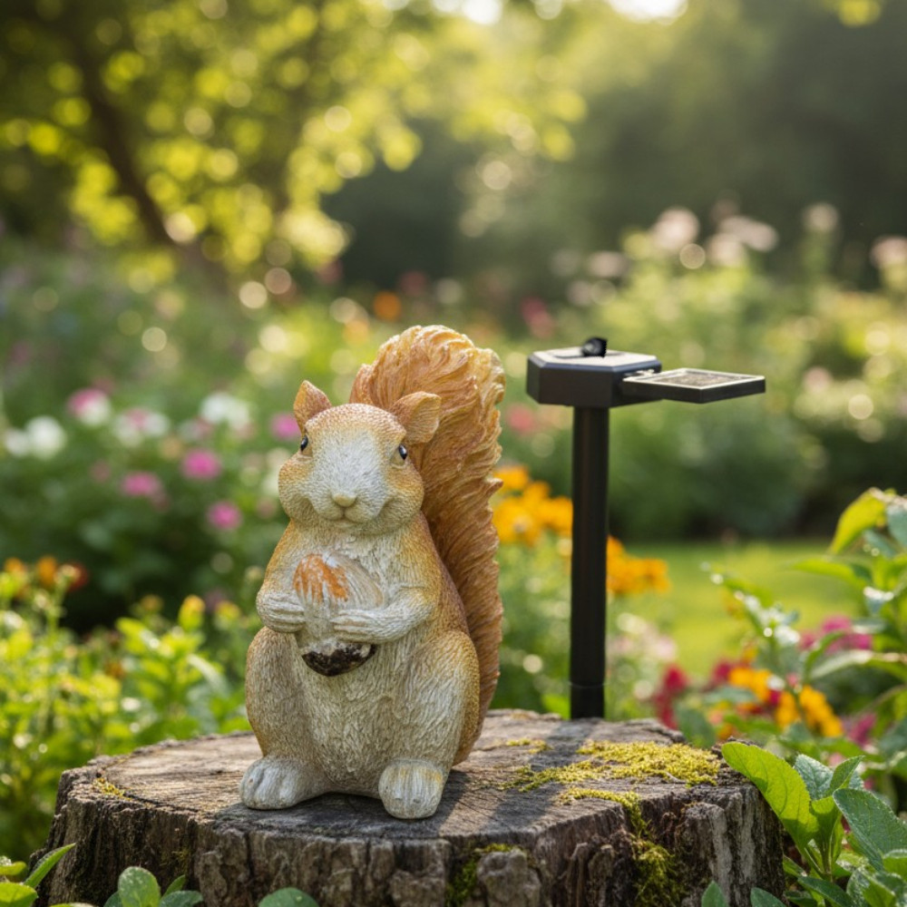 Dobd fel kerted, teraszod vagy erkélyed hangulatát ezzel a bájos, világító mókus figurával! A részletgazdag kialakítású dekorlámpa nappal kedves dísze a kertnek, sötétedés után pedig meleg, hangulatos fényt áraszt, amely automatikusan bekapcsol a beépített napelemnek köszönhetően.