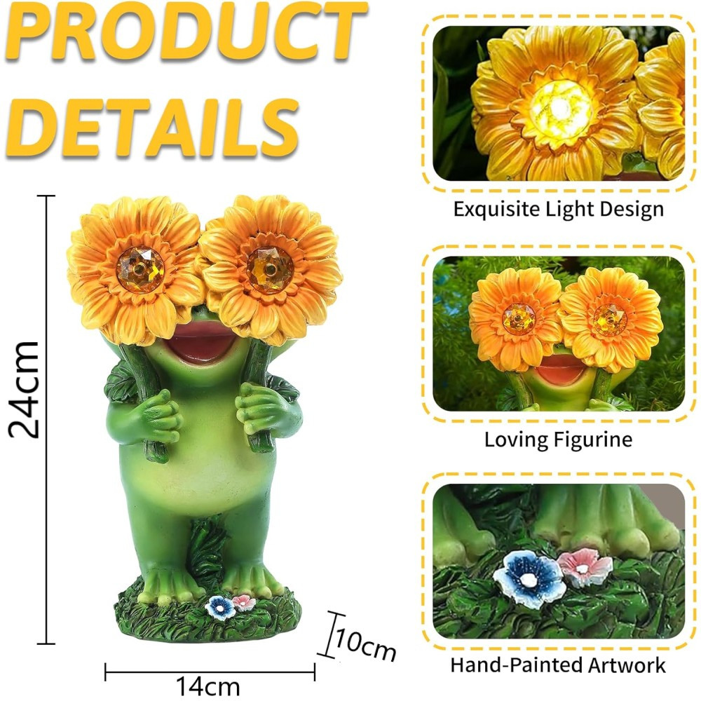 Egyedi dizájn: napraforgós figyelő béka figura beépített fényes „szemekkel”
