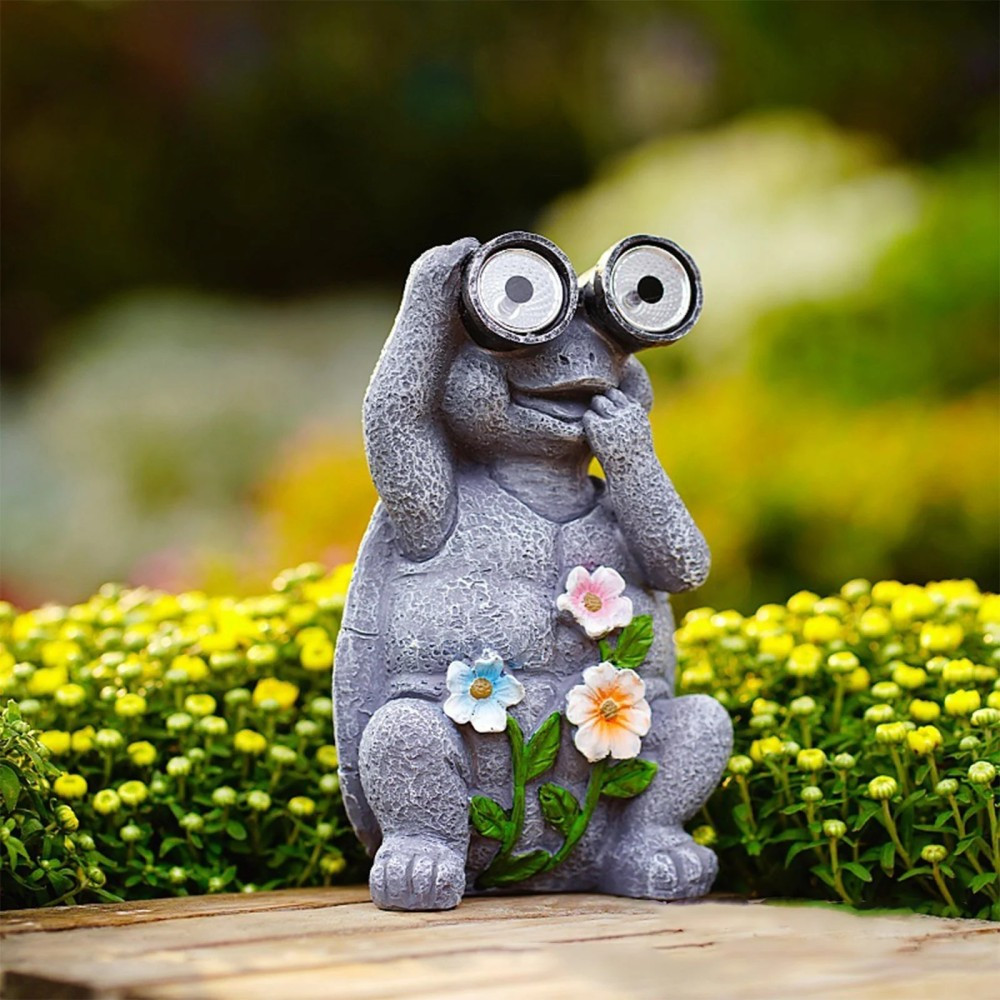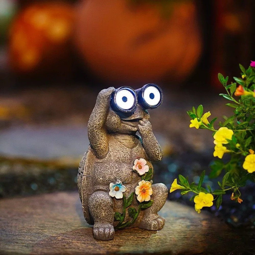 Egyedi dizájn: kedves figyelő teknős figura beépített fényes „szemekkel”