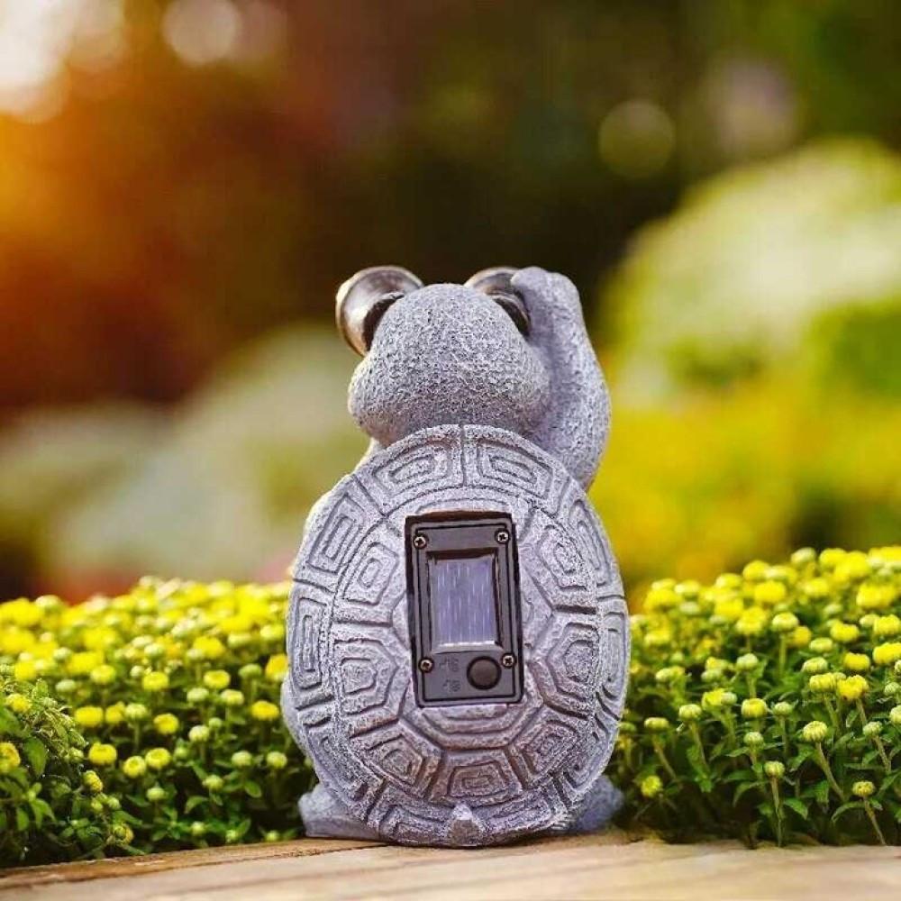 Dobd fel a kerted hangulatát ezzel az humoros teknős formájú napelemes lámpával! A figurába rejtett LED szemek sötétedés után automatikusan felgyulladnak, így különleges fényt és vidám hangulatot varázsolnak udvarodba, erkélyedre vagy teraszodra.