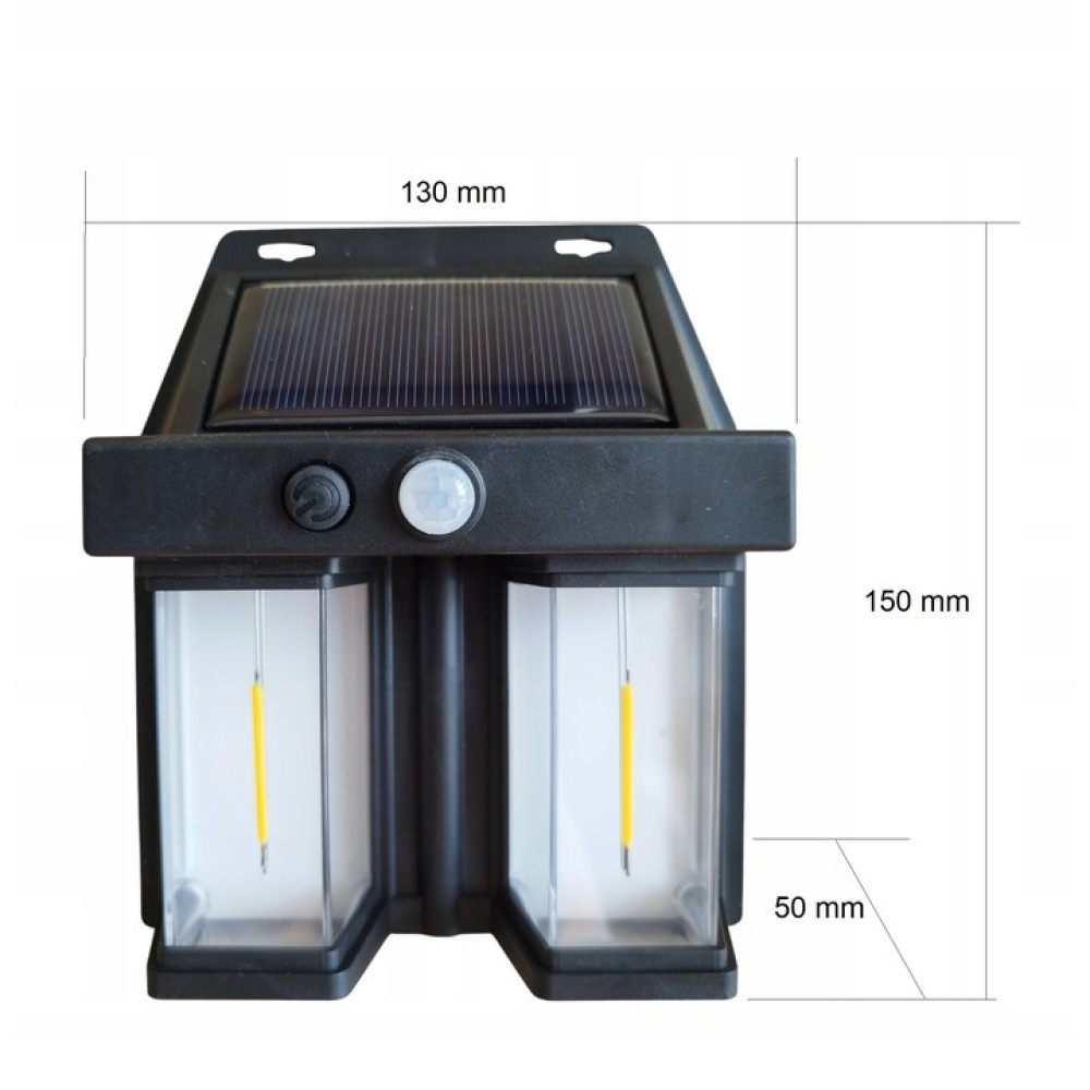 Napelemes mozgásérzékelő fali lámpa melegfénnyel - 2 LED