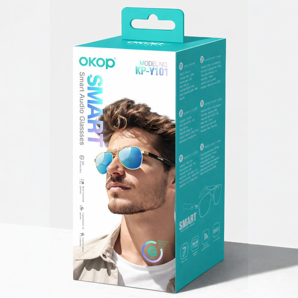 Az OKOP KP-Y101 Smart Audio Glasses egy modern, stílusos napszemüveg és vezeték nélküli audioeszköz egyben. A szemüveg szárába épített minihangszórók lehetővé teszik, hogy zenét hallgass, telefonhívásokat fogadj, navigációs hangutasításokat kövess — mindezt fülhallgató nélkül, nyitott fülű hangátvitellel.