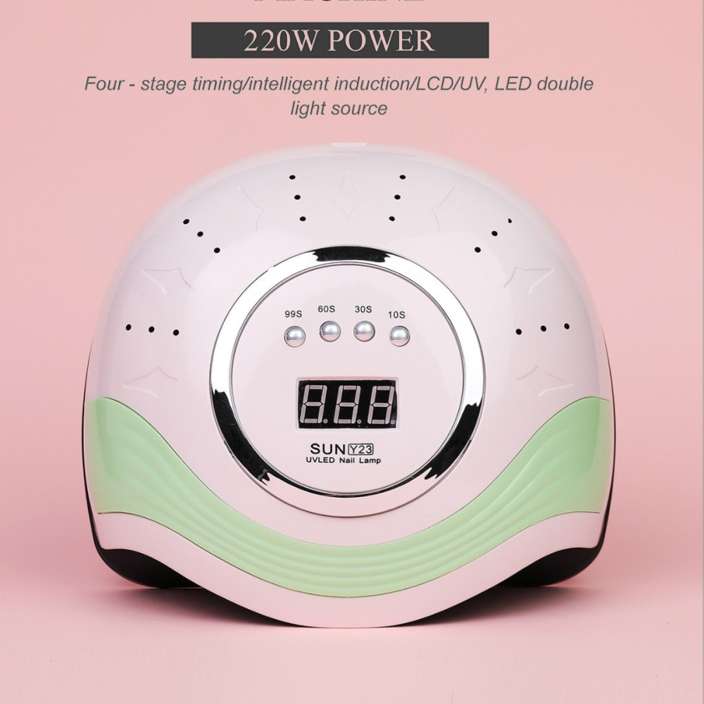 A Sun Y23 egy professzionális UV és LED körmös lámpa, amely gyors, hatékony és egyenletes szárítást biztosít minden gél lakkhoz és építőanyaghoz. A 220W teljesítménynek köszönhetően a körmök percek alatt megszáradnak, így ideális választás otthoni és szalon használatra egyaránt. Ergonomikus, félhold alakú kialakításának köszönhetően a kéz és a láb is kényelmesen elfér alatta.