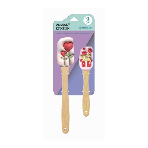 Szilikon spatula szett – 2 db-os, szíves mintával
