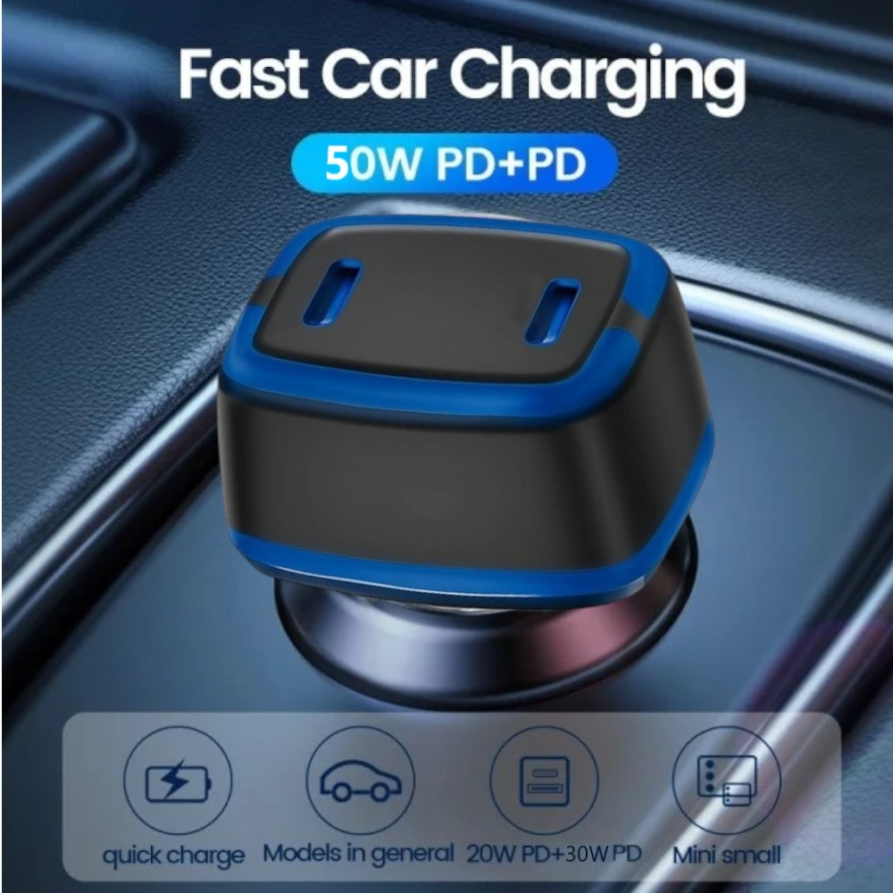 Szivargyújtós autó gyorstöltő Dual USB-C porttal 50W