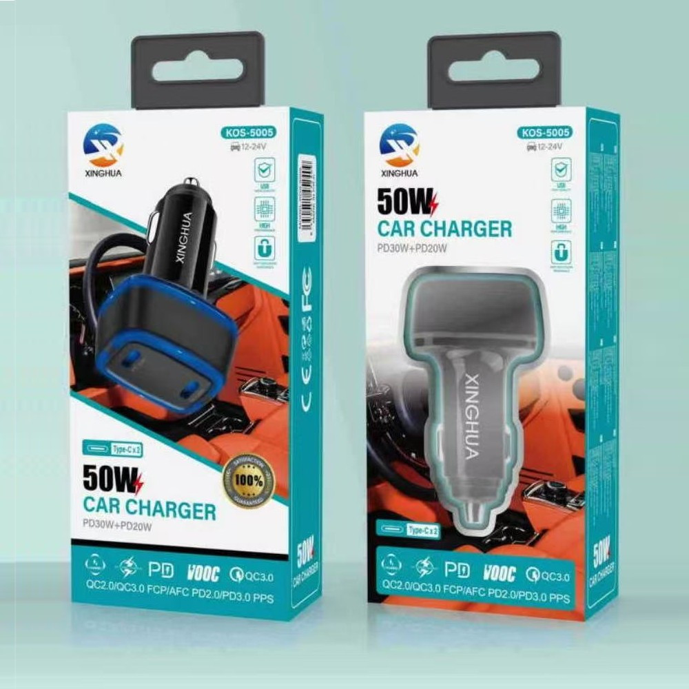 Gyorsan, biztonságosan és egyszerre két eszközt is tölthet útközben a Xinghua 50W autós töltővel!