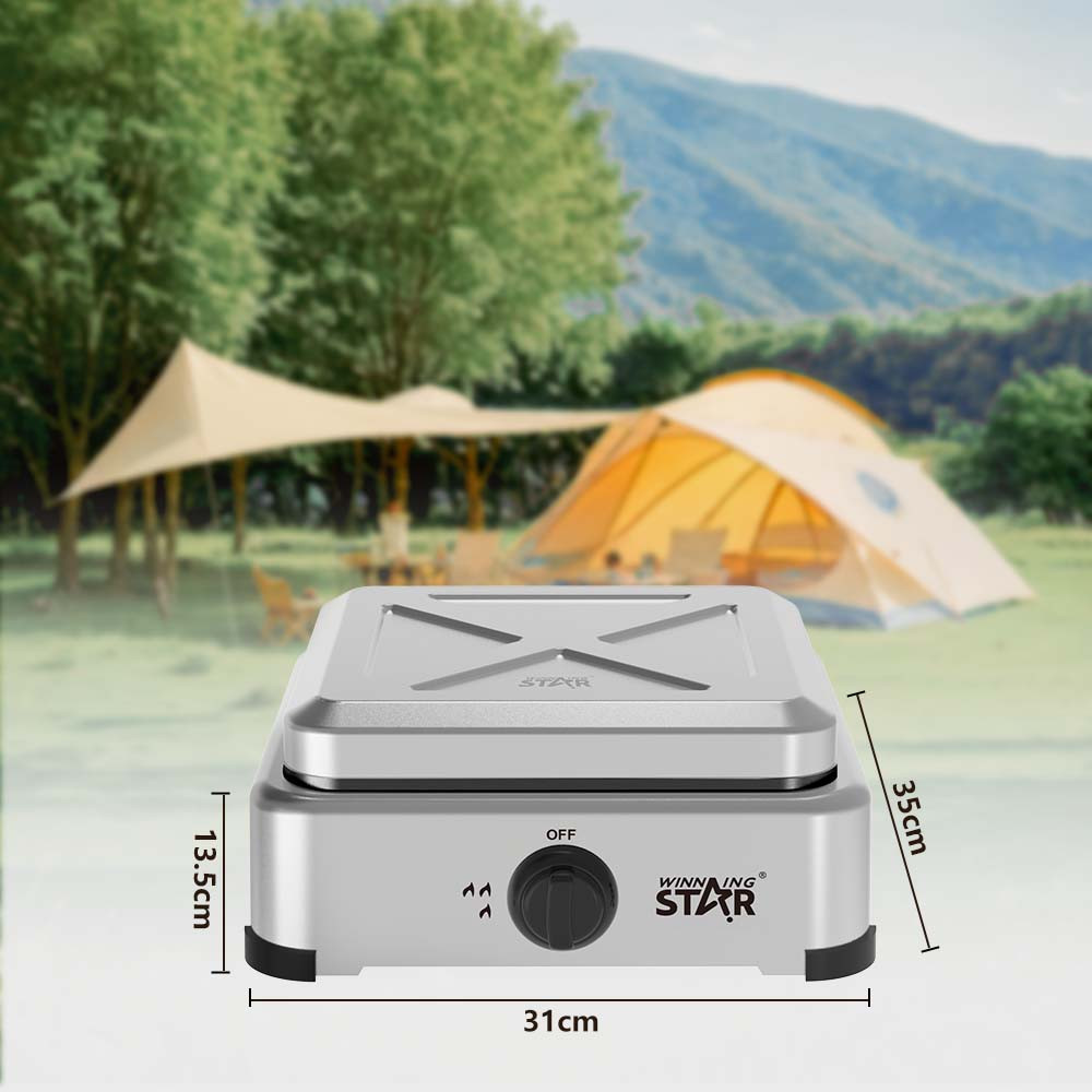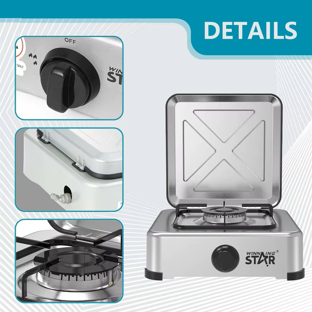 A Winning Star ST-9663 egy praktikus, hordozható gáztűzhely, amely tökéletes választás kempingezéshez, kirándulásokhoz, szabadtéri főzéshez vagy akár otthoni tartalék megoldásnak is. Kompakt méretének köszönhetően könnyen szállítható, használata pedig rendkívül egyszerű.