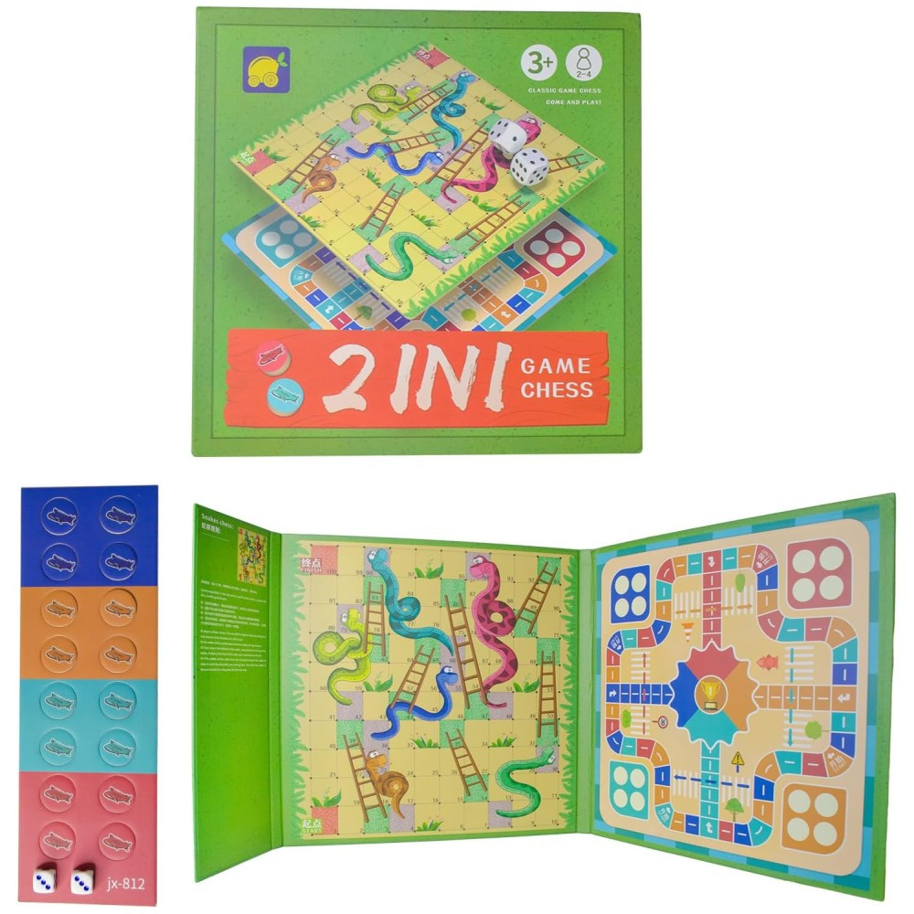 Ez a praktikus, könyv formátumú 2 az 1-ben társasjáték készlet két klasszikus kedvencet egyesít:  mágneses kígyósakkot és repülő sakkot. A kompakt, könyvszerű kialakításnak köszönhetően könnyen hordozható, így ideális választás utazáshoz, kiránduláshoz vagy otthoni játékhoz.