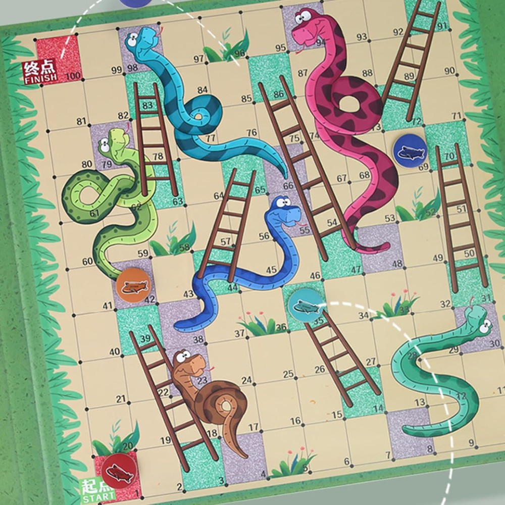 A kígyós sakkjáték dobókocskás figurákkal és egyszerű szabályaival a koncentrációt és az előretervezést.