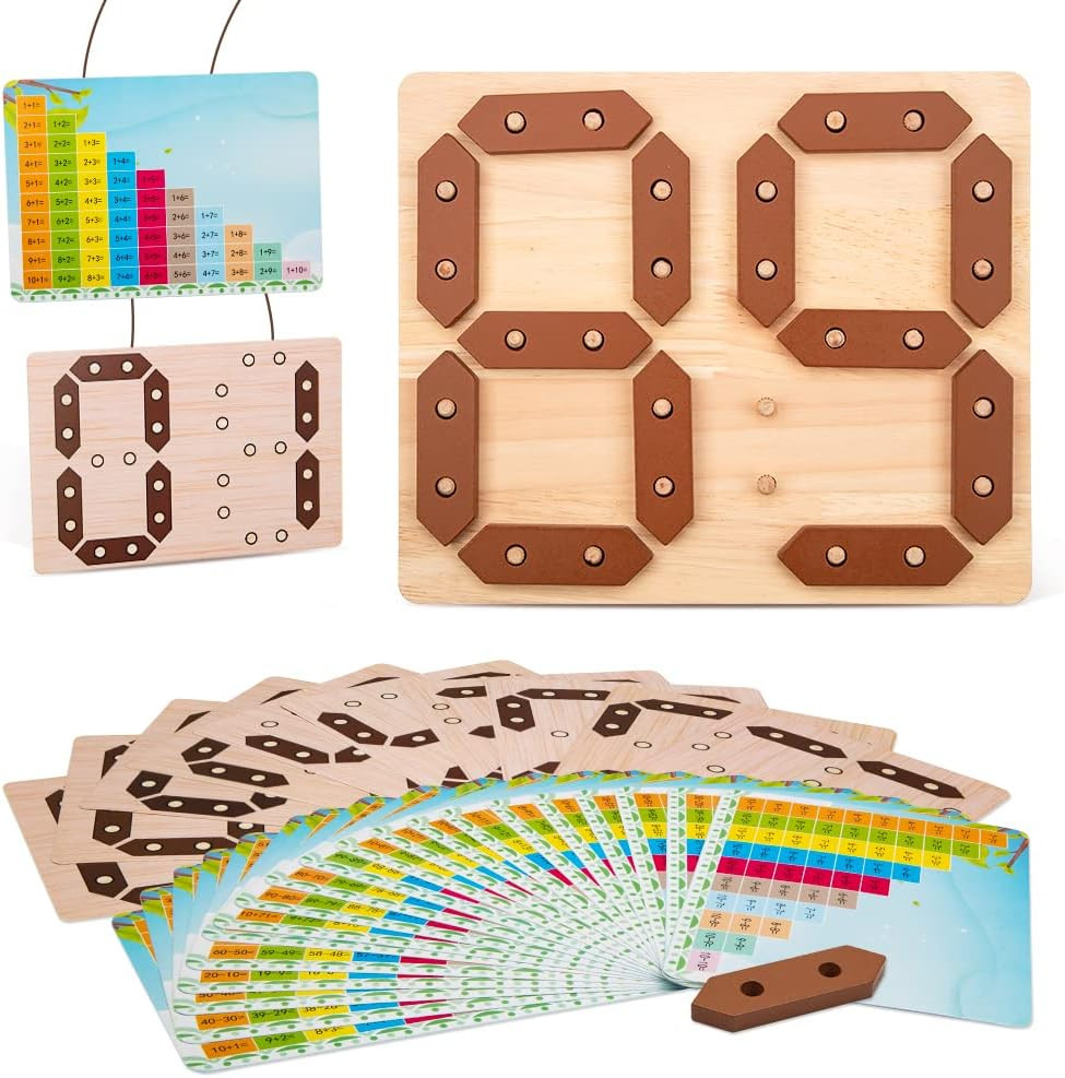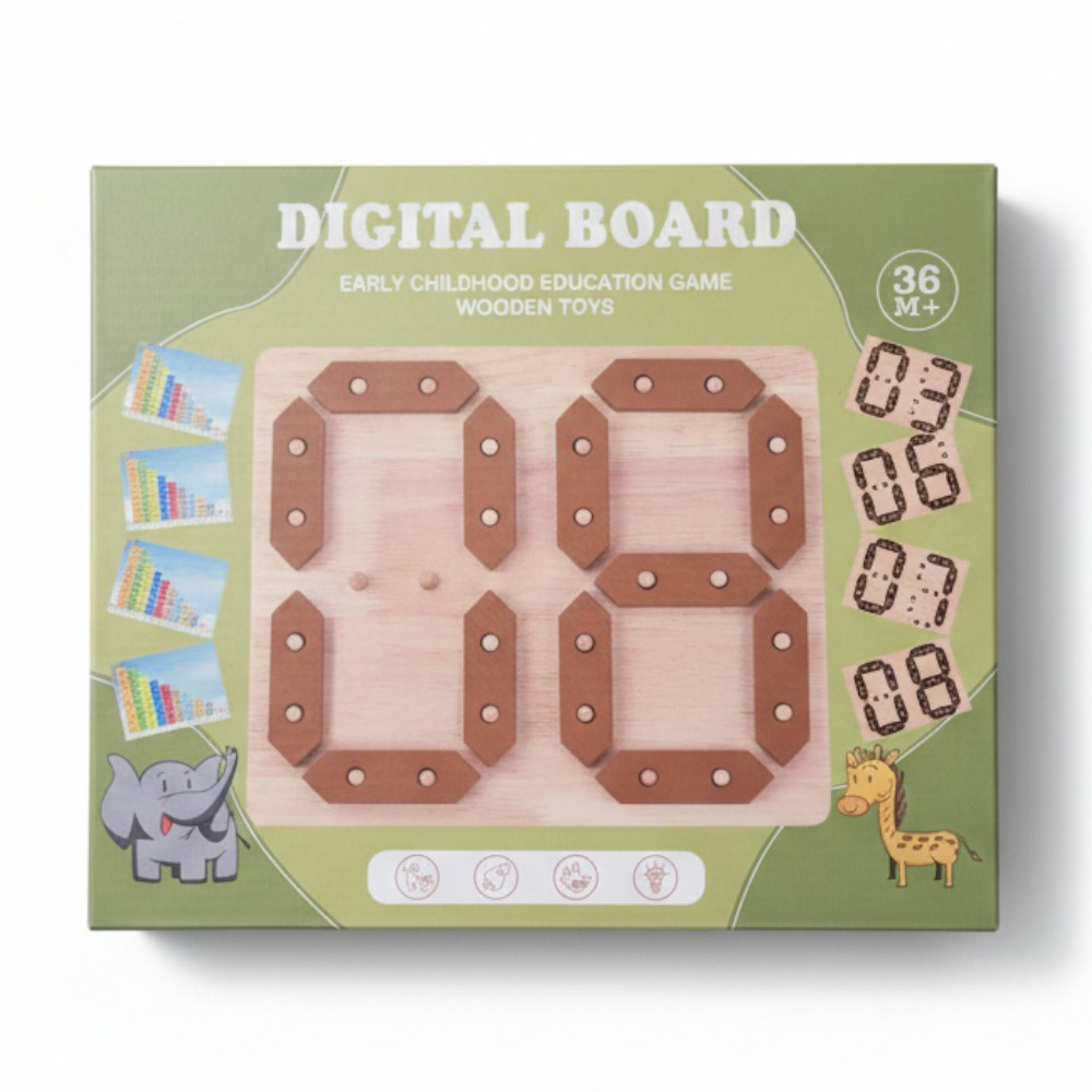 Ez a természetes fából készült Montessori jellegű oktatójáték játékos formában segíti a gyermekeket a számok felismerésében, az alapvető matematikai műveletek megértésében és a logikus gondolkodás fejlesztésében. A digitális kijelzőt idéző kialakítás különösen vonzó a kisgyermekek számára, miközben tanulásra ösztönöz.