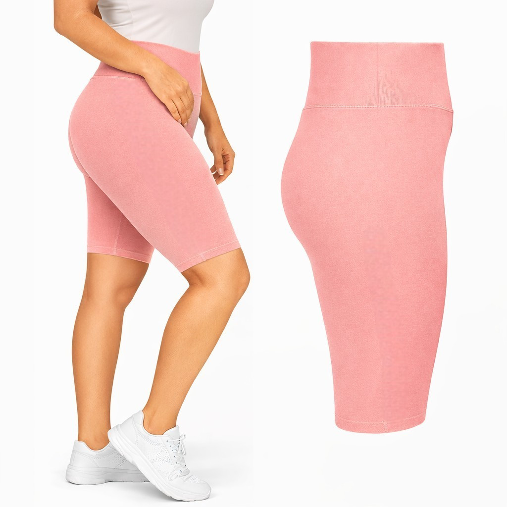 Magas derekú női bambusz kerékpáros leggings - Rózsaszín