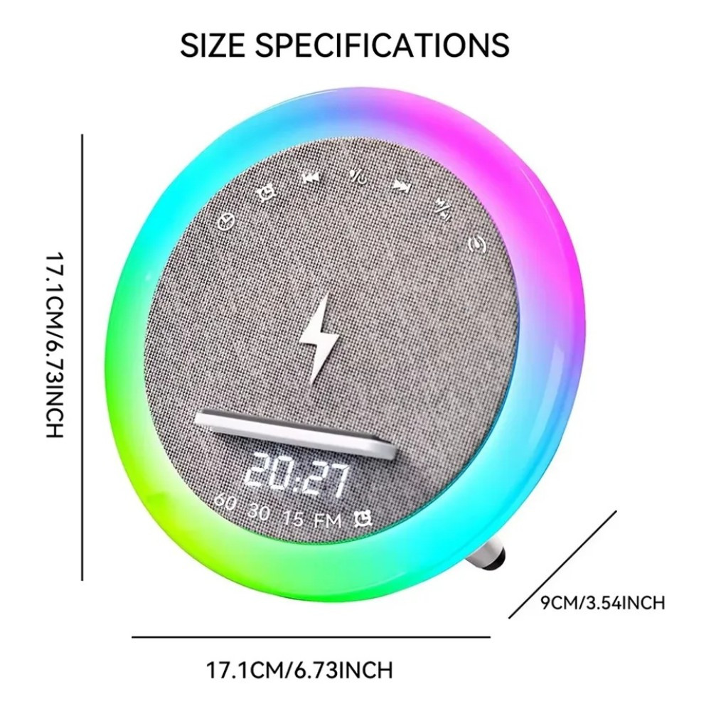 Vezetéknélküli Bluetooth Hangszóró és Ébresztőóra LED Lámpával - 15W