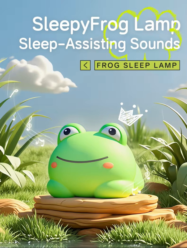 Aranyos, puha tapintású béka formájú éjjeli lámpa, amely nemcsak kellemes hangulatfényt biztosít, hanem nyugtató alvást segítő hangokat is lejátszik. Ideális gyerekszobába, babaszobába vagy ajándéknak.