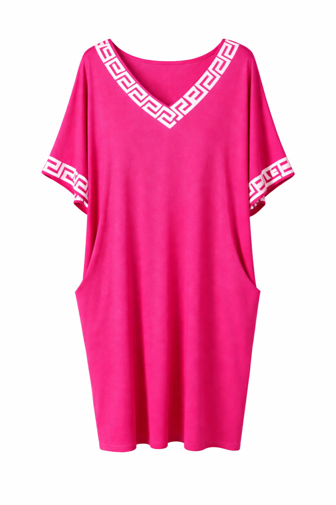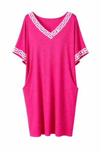 Görögmintás női V-nyakú zsebes ruha, laza bő fazon - Pink