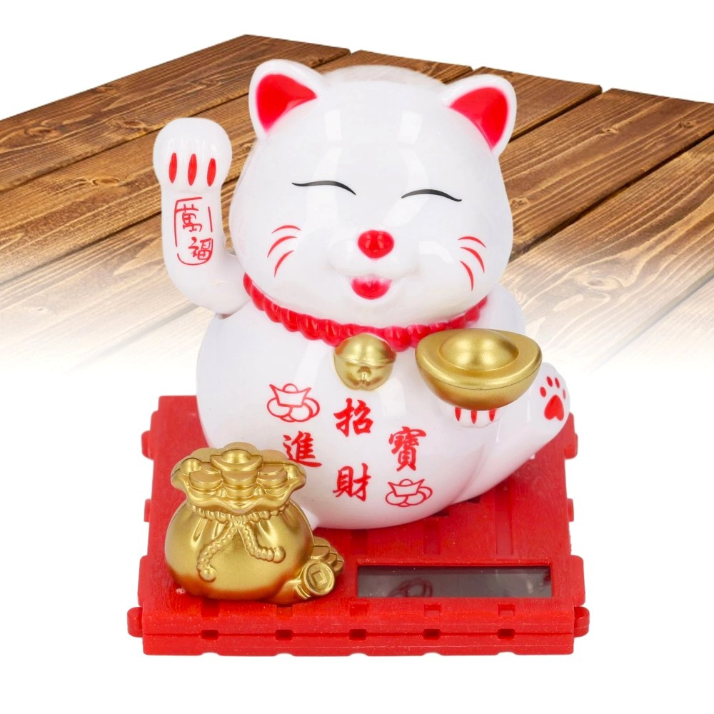 Ez a bájos, mosolygó Maneki Neko macska nemcsak dekoratív figura, hanem szerencsét, gazdagságot és jó egészséget is hozhat a mindennapokba. Napelemes működésű, így amint fény éri, a jobb mancsa automatikusan integetni kezd.