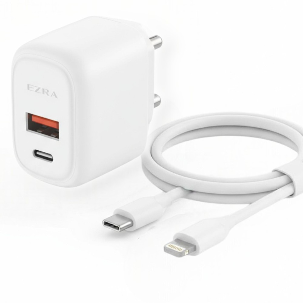 Dual kimenetű fali gyorstöltő + USB-C – Lightning kábel (QC / PD 20W)